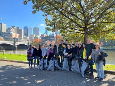Our Melbourne office clean-up attracted record attendance, with seventeen people from across departments taking part to clean up the banks of the Yarra River, and luckily, it was a beautiful day – not always guaranteed in Melbourne.