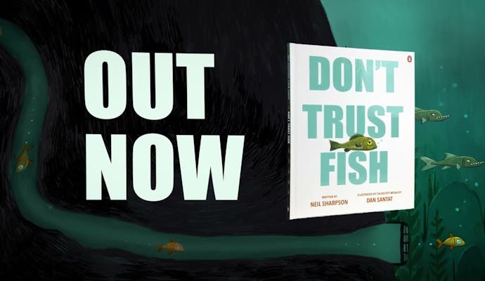 DON'T TRUST FISH! by debut picture book author Neil Sharpson and illustrated by National Book Award-winning creator Dan Santat, an absurdly laugh-out-loud picture book about the villainy of fish. See the book: https://www.penguin.com.au/books/dont-trust-fish-9781761351082