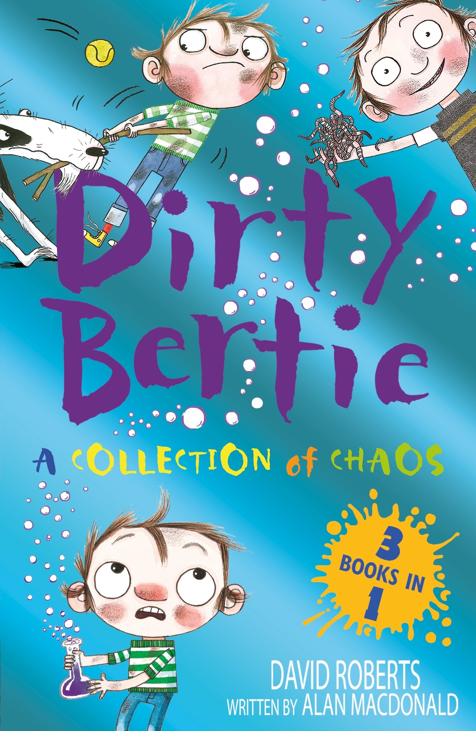 Enjoy the comic capers of Dirty Bertie – the world’s grubbiest trouble magnet – in this bumper book of nine revolting stories from TROUBLE!, WORMS! and FETCH!