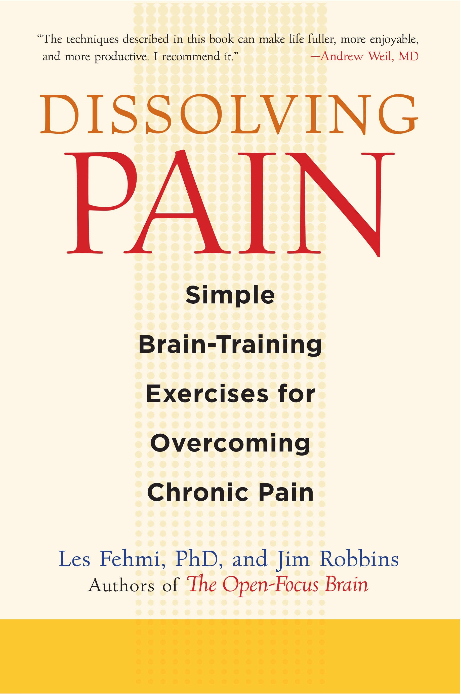 Dissolving Pain is based on the premise that although pain is perceived to exist in a particular part of the body, pain in fact resides in the brain. Drawing on existing scientific research and on decades of clinical experience, Dr. Fehmi offers brain-training exercises that quiet the pain signal in the brain. The exercises involve altering the way we pay attention to pain, cultivating what Fehmi calls Open-Focus Attention: a relaxed form of awareness that changes the neural blood flow and increases alpha brainwave activity (associated with reduced stress and beneficial hormonal changes). These exercises are effective in the treatment of many forms of pain including back, shoulder, neck, and joint pain; headaches; muscle pain and tension; and pain from traumatic injury.