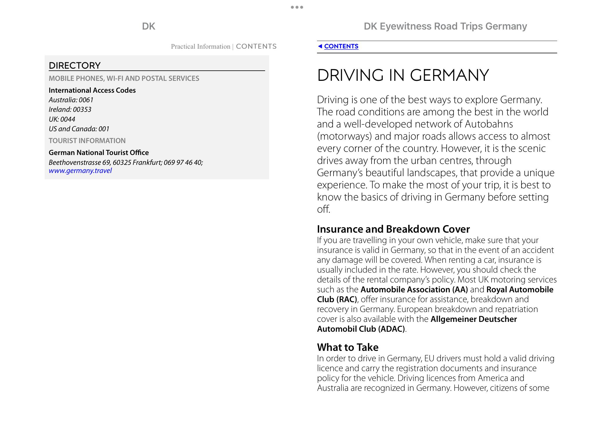- Practical information: rules of the road, detailed directions and driving tips