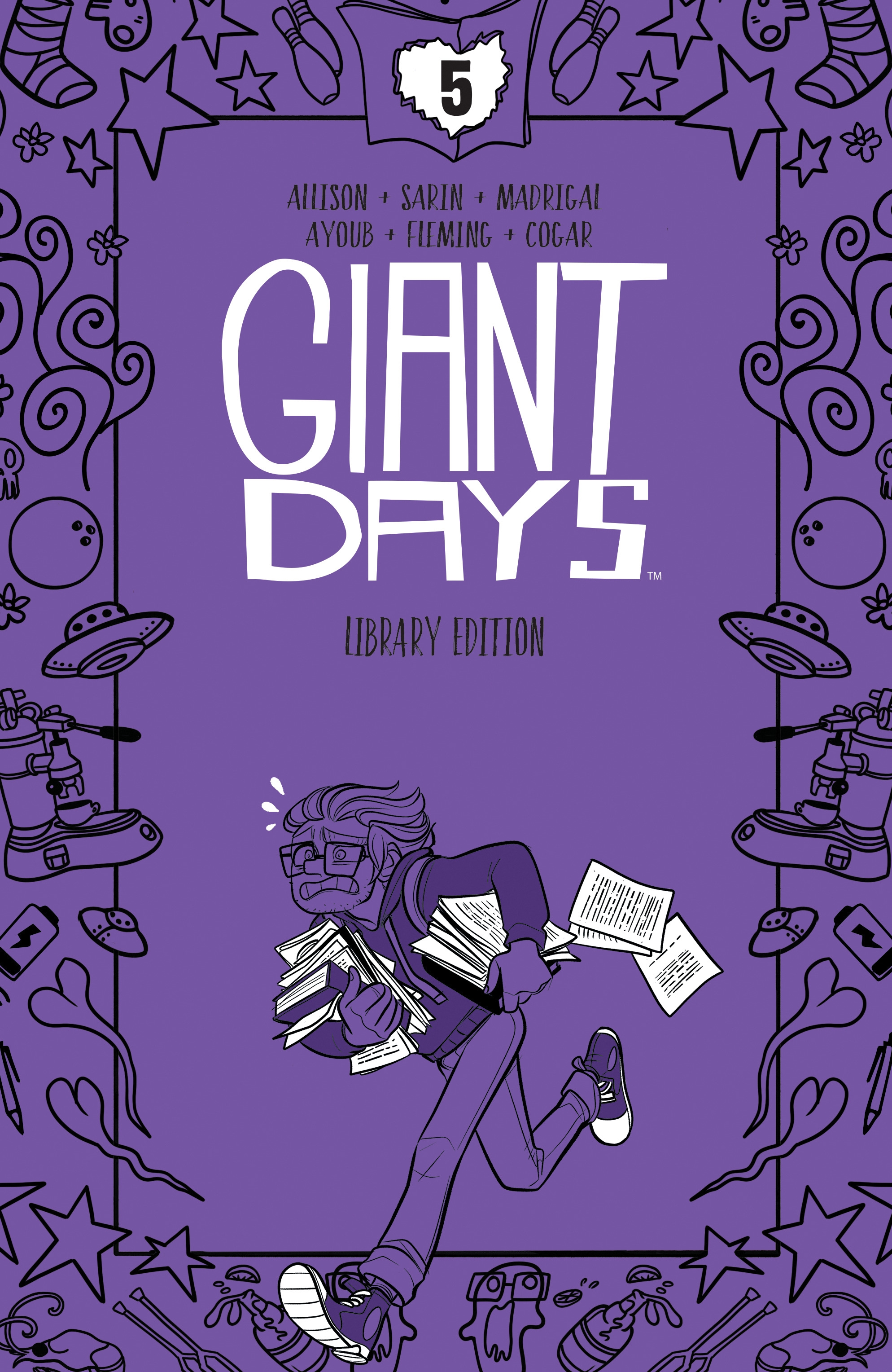 The end of the second year of university is right around the corner for best friends Daisy, Esther, and Susan at Sheffield University. Their glory days of living together are coming to an end, though, as McGraw and Susan plan to move into their own flat, and Daisy’s going against her sensible nature to live in a party warehouse with her tempestuous girlfriend, Ingrid. Adrift on her own, Esther’s stuck scrambling for somewhere to call her own, as the options dwindle down to nothing. At least the others are all squared away, until disaster strikes twice, leaving Ed with broken bones and a bruised ego, and Daisy with a broken heart… The Giant Days Library Edition Volume 5, written by John Allison (Wicked Things, Steeple) and illustrated by Max Sarin (Harley Quinn: The Animated Series: The Eat Bang Kill Tour), Liz Fleming (Steven Universe), and Julia Madrigal (Lumberjanes) collects the next eight issues of the Eisner Award-winning and Harvey Award-nominated series, along with the 2017 holiday special, all in a deluxe hardcover. Collects Giant Days #33-40.
