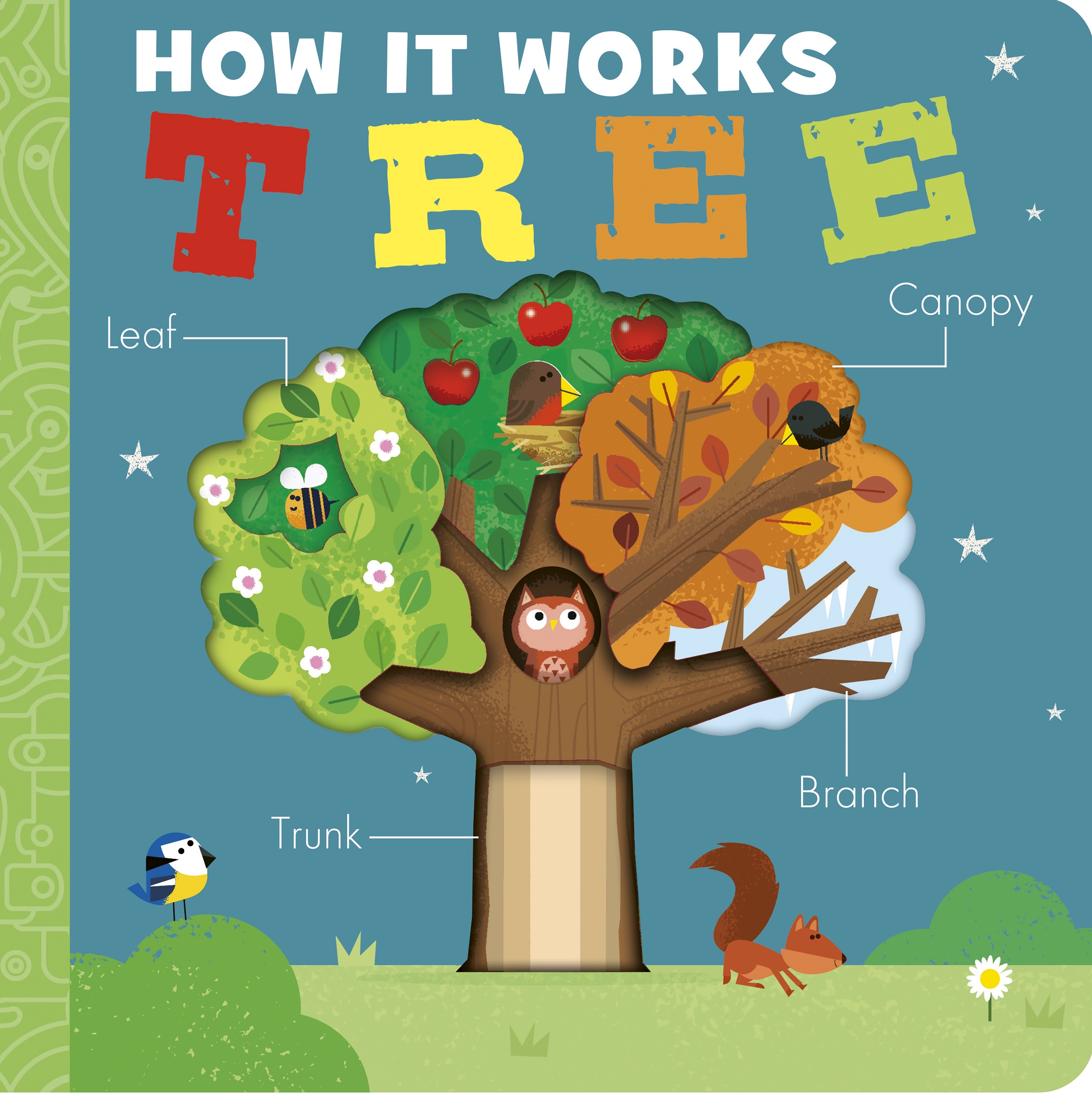 A super-simple first introduction to trees with layered die-cut board book pages.