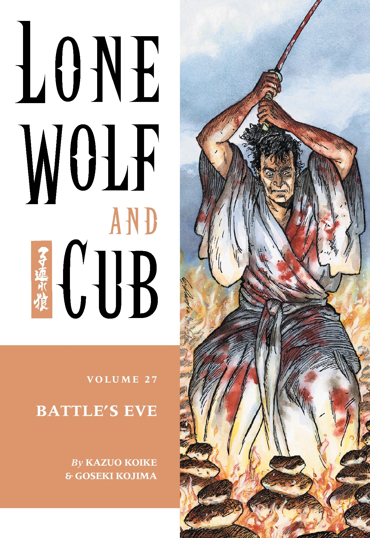 Hooooo doggy! The tension is getting so thick, a dotanuki wielded by the strongest samurai would have a hard time cutting through it! Just two more volumes left until one of the world's most classic pieces of comic-book literature reaches its exciting and emotional conclusion. Two swords remain planted in the ground, awaiting the final duel between the conniving Retsudo and the vengeful Itto, and little Daigoro guards the two blades with his life. Indeed, his life is threatened when a stampede of villagers escaping a burning village almost plow him into the dirt. Impressed townfolk decide to stop and help him, staying for a while on the same beach. For once, Daigoro experiences the joy of being a child, playing with the other children, but that peace won't last long. Yaygu Retsudo, imprisoned in the castle of the shögun, deceives his way to freedom and commands the very last members of the Yagyu ninja to kill Itto! But knowing swords alone won't kill him, Yagyu sends a strange and fascinating weapon to the battlefield, the exploding ninja!