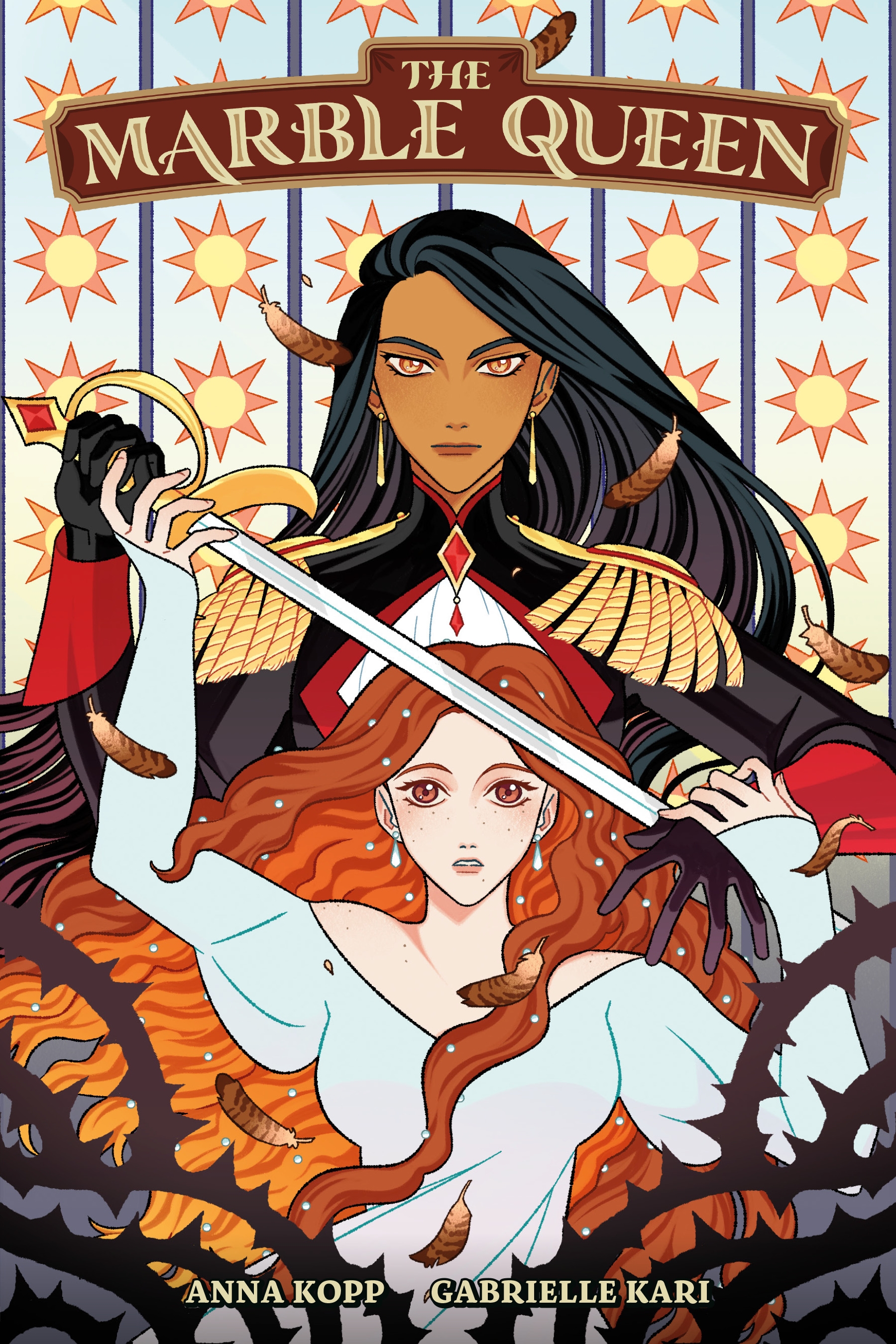 A sapphic YA graphic novel with sword fighting, political intrigue and magic where the princess needs a marriage alliance for the welfare of her kingdom, but she unknowingly accepts a proposal from a mysterious country, having come not from the prince, but his sister.