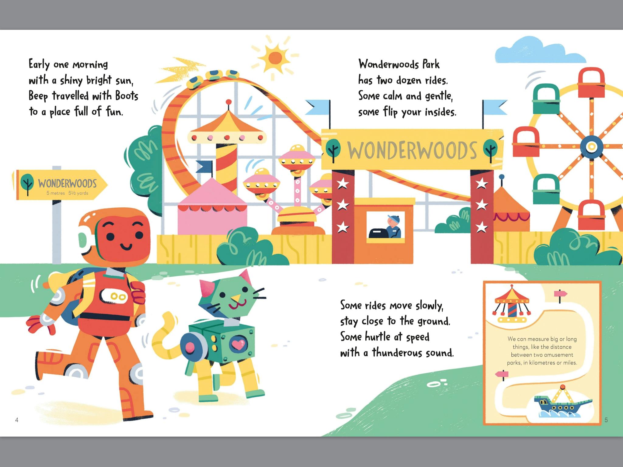 Characterful illustrations and rhyming text bring Beep and Boots to life. Children aged 5-7 will love seeing the adventures the robot duo go on and will learn key mathematical concepts concerning measuring in a gentle, fun way. Questions at the end of the book reinforce learning and encourage kids to look at the maths they can see in the world around them.