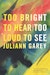 In her tour-de-force first novel, Juliann Garey takes us inside the restless mind, ravaged heart, and anguished soul of Greyson Todd—a successful Hollywood studio executive who leaves his wife and young daughter for a decade to travel the world, giving free reign to the bipolar disorder he’s been forced to keep hidden for almost 20 years. The novel intricately weaves together three timelines: the story of Greyson’s travels (Rome, Israel, Santiago, Thailand, Uganda); the progressive unraveling of his own father seen through Greyson’s childhood eyes; and the intricacies and estrangements of his marriage. The entire narrative unfolds in the time it takes him undergo twelve 30-second electroshock treatments in a New York psychiatric ward.