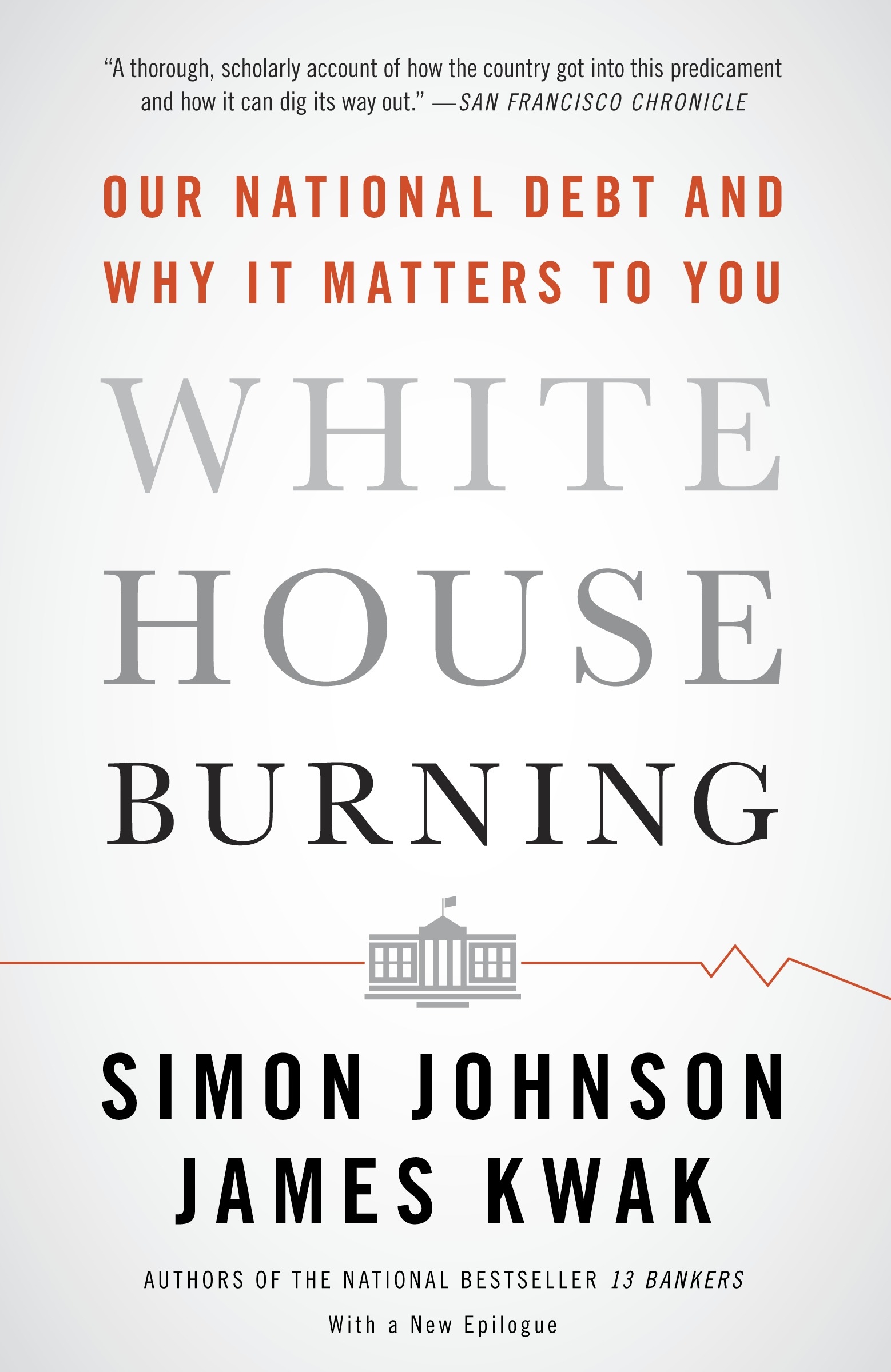 In White House Burning, Simon Johnson and James Kwak—authors of the national best seller 13 Bankers and cofounders of The Baseline Scenario, a widely cited blog on economics and public policy—demystify the national debt, explaining whence it came and, even more important, what it means to you and to future generations. They tell the story of the Founding Fathers’ divisive struggles over taxes and spending. They chart the rise of the almighty dollar, which makes it easy for the United States to borrow money. They account for the debasement of our political system in the 1980s and 1990s, which produced today’s dysfunctional and impotent Congress. And they show how, if we persist on our current course, the national debt will harm ordinary Americans by reducing the number of jobs, lowering living standards, increasing inequality, and forcing a sudden and drastic reduction in the government services we now take for granted.