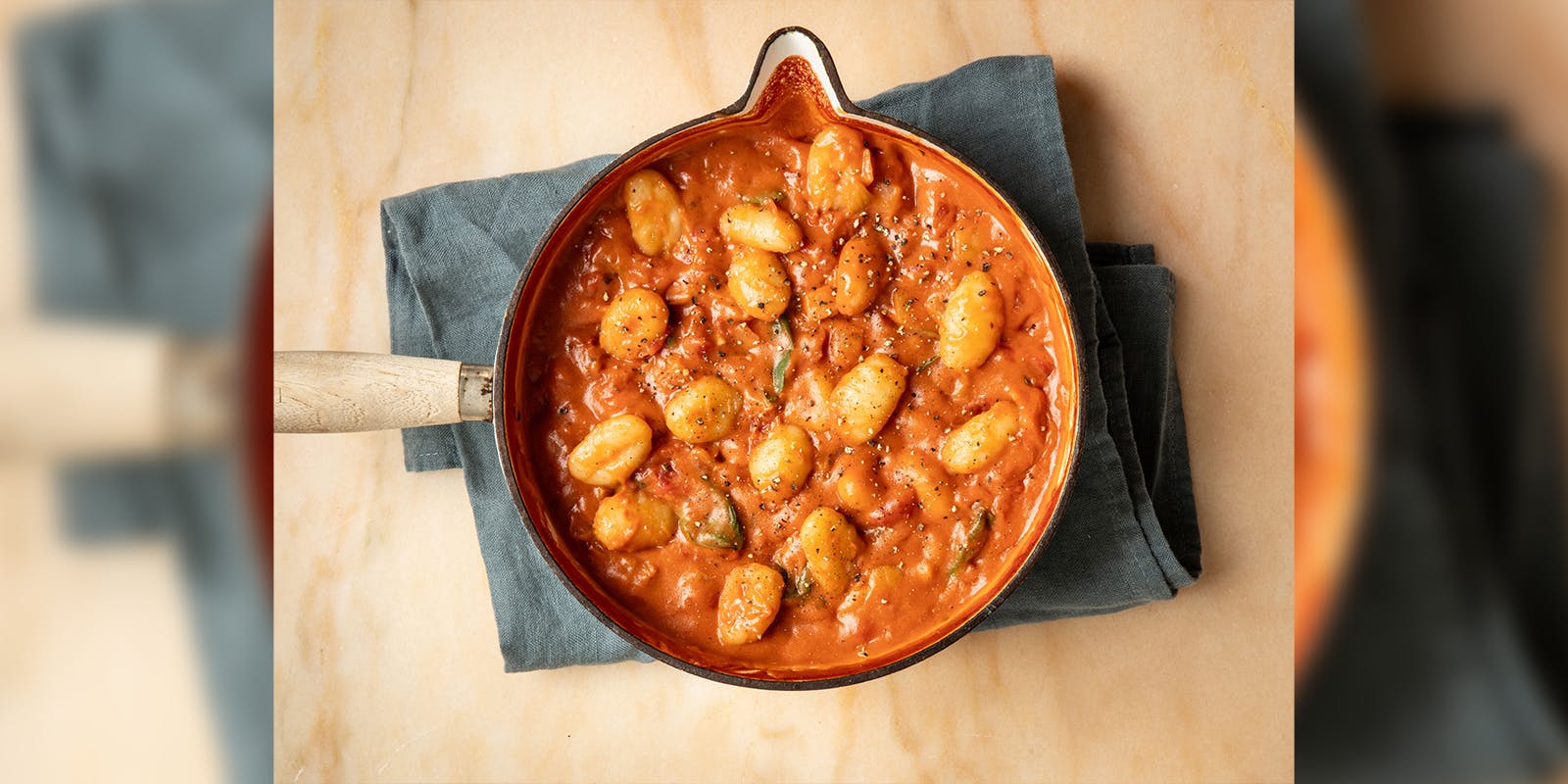 This clever recipe from The Batch Lady uses a garlic and herb soft cream cheese (such as Boursin) as a shortcut to a deliciously creamy and flavourful tomato sauce for gnocchi.